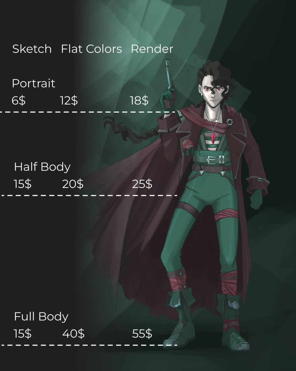 Final prices will be calculated individually, depending on the complexity of character design/background / any additional details.